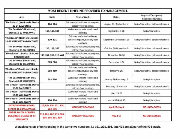 St. Augustine Beach & Tennis Club Restoration Project 2024-2025 SCHEDULE